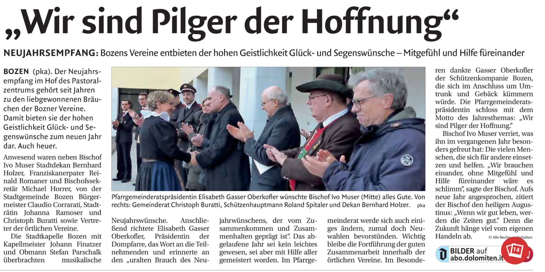 BOZEN – Bericht in der Tageszeitung Dolomiten vom 05.01.2026 über die Neujahrswünsche an die Kurie.